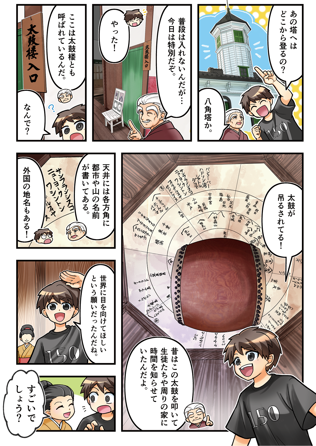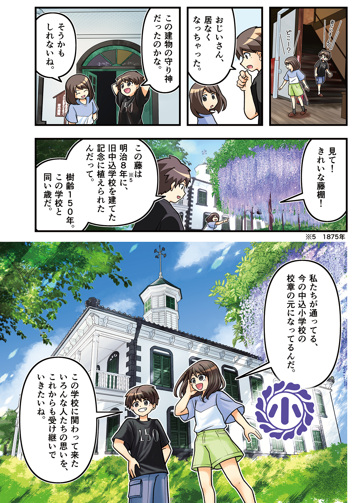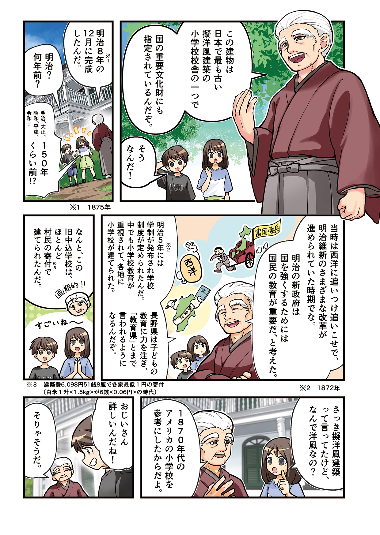 重要文化財旧中込学校校舎は、明治8年(1875年)の完成から令和7年(2025年)で150周年を迎えました。これを記念して、旧中込学校の魅力を紹介する漫画を制作しました。旧中込学校の建設に込められた当時の人々の想いに触れてみてください。