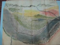 次に掲げる古絵図は、倉瀬用水が灌漑する駒寄区の千曲河原に開けた農耕地の洪水被害と復旧の記録です。(五郎兵衛記念館寄託「御馬寄村古文書目録」134 年月日不明)