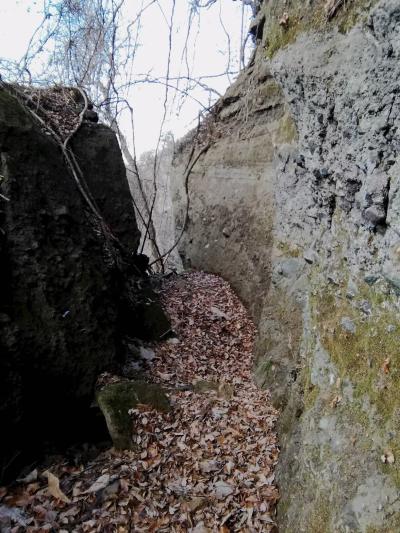 用水取入れ口付近の断崖に堀られた旧トンネル