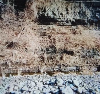 片倉地籍の断崖に施工された隧道や木製の用水施設は鹿曲川の浸食により破壊が度々でした。撮影五郎兵衛記念館