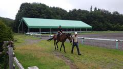 馬事公苑の方に馬の特徴や接する時の注意点について聞いた後、実際に乗馬を体験しました。研修生の多くは、馬の背が思ったよりも高いことに驚いた様子でした。