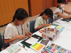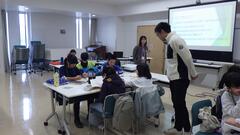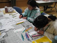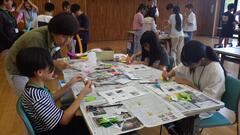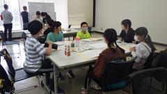 子どもまつりの担当ブースを決めた後、それぞれのブースに分かれて、ものづくりの練習を行いました。研修生たちは、どうやったら来場者にうまく教えられるか、考えながら取り組んでいました。