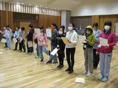 お楽しみ会でゲームやビンゴを楽しんだ後、研修生とボランティアスタッフで記念撮影をしました。無事に12回の研修を終えることができました。1年間本当にありがとうございました。今後、研修生のみなさんが、子ども会等のリーダーとして活躍してくれることを祈っています。