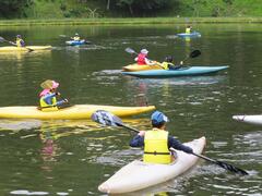 準備体操、パドルの使い方の練習をした後に、実際にカヌーを漕ぎました。最初はおそるおそる漕いでいた研修生たちも、すぐにコツを掴んで、進みたい方向に進めるようになりました。