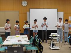 安氏洋子先生に「音を表現すること」について学んだあと、絵本を題材に楽譜を描いたり、楽器で表現することに挑戦しました。どのグループもそれぞれが選んだ楽器で堂々と発表していました。