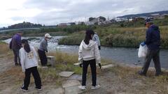 佐久市少年センター補導委員協議会および育成推進協議会の理事と一緒に千曲川河川敷のごみ拾いを行いました。