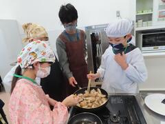 内田すみ江先生を講師に迎え、お弁当作りに挑戦しました。包丁や火の取り扱いに気をつけながら協力してお弁当を完成させることができました。調理後はみんなで作ったお弁当を見せ合いながら、楽しく食べました。