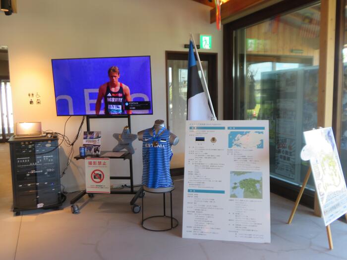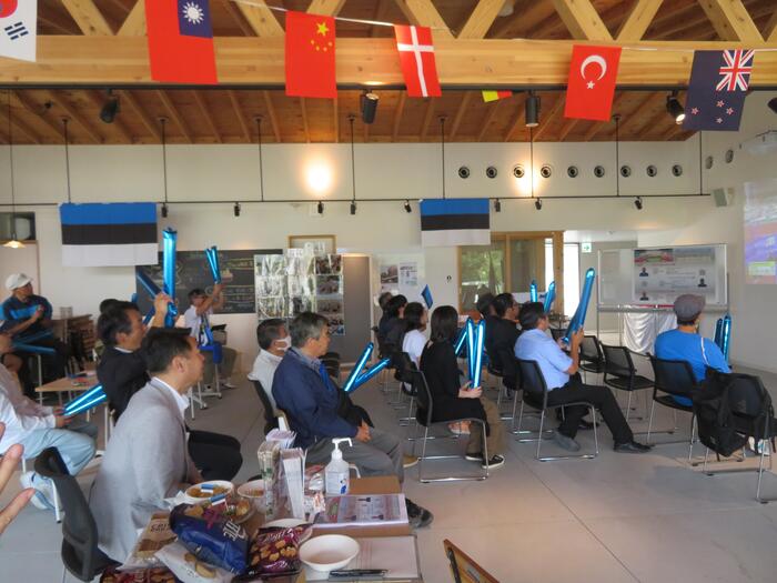パブリックビューイングでエストニア選手を応援(9月21日野沢多目的広場交流施設)