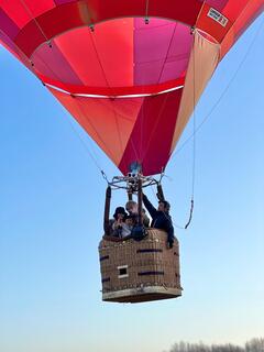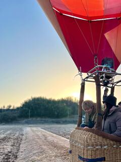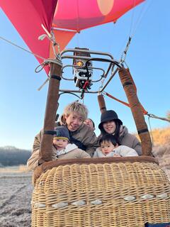バーナーの迫力ある音に驚きつつも、瞳を輝かせてバスケットに乗り込みました。