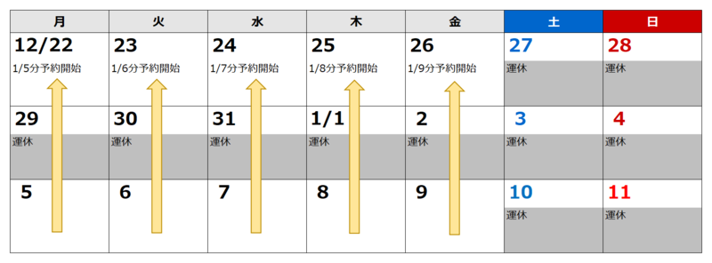 ※1月13日(火曜)以降の予約は、通常どおり1週間前からの受付開始となります。