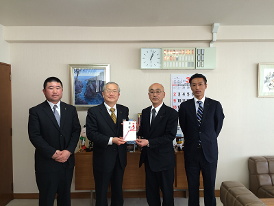 平成27年4月4日大船渡市戸田市長に義援金10次分100万円をお渡ししました!