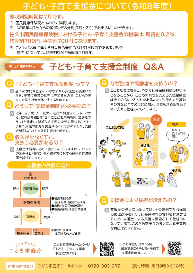 子ども・子育て支援金制度の概要等につきましては、下記のこども家庭庁ホームページまたはリーフレットをご覧ください。