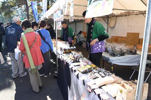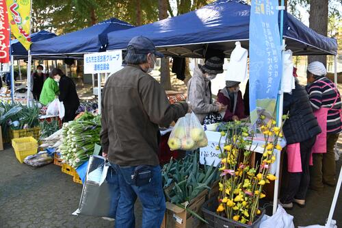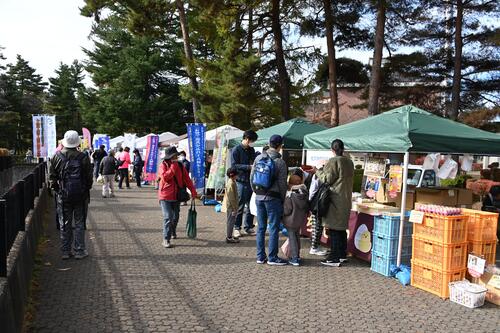 ・お米、野菜、りんご、大豆、シクラメン、牛肉などの農産物や、はちみつ、菜種油、プリン、焼き菓子、ワイン、コーヒー、手芸品などが販売されます。