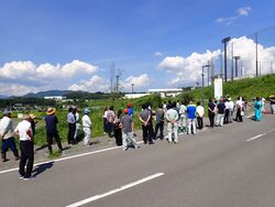 実演会当日は、大変多くのみなさんにお集まりいただき、ラジコン式草刈機を導入することによる「危険な場所での除草作業も安全に実施できること」や、「作業時間の低減」などについて実感することができました。