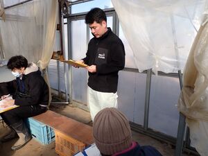 座学では、冬季のハウス内で葉物野菜の現在の生育状況と、セルトレイを使用した播種から育苗の特徴と方法などの説明を聞きました。収穫した野菜の保管方法の知識を深め、長く保存するポイントも学びました。