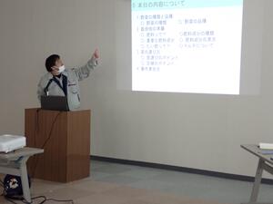 座学では、野菜栽培についての肥料、農薬の基礎知識や連作障害軽減のポイントなどを学習しました。また、農作業中の機械に巻き込まれる事故や熱中症対策について確認しました。