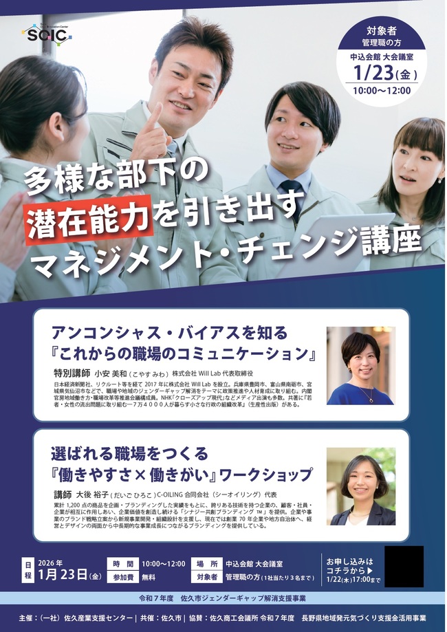 第2弾 1/23(金)市内企業の管理職向けセミナー『多様な部下の潜在能力を引き出すマネジメント・チェンジ講座』を開催しました!
