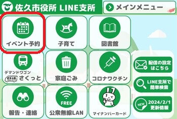 イベント予約をタッチして、案内に従って申込みをしてください