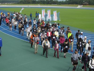 第2回ぴんころウォークin佐久平が、2日間の日程で行われました。佐久総合運動公園陸上競技場を発着とする計4コースに、延べ265名の皆さんが参加され、「ぴんころ地蔵」をはじめ酒蔵やスイーツ店など、テーマごとに設けられたチェックポイントを巡りながらポールを使ったウォーキングを楽しまれました。