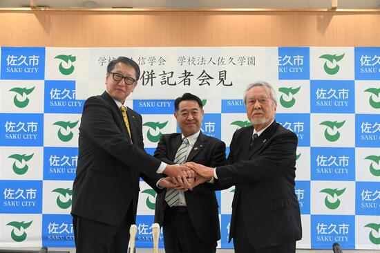 佐久地域の秀でた特徴である、地域医療や地域福祉を支えてきた佐久学園の地域に根差した教育と、信学会の持つ教育ネットワークが噛み合うことで相乗効果が生まれ、将来にわたって地域にあり続ける高等教育機関となるよう、合併の仲介者として市も積極的に関わって盛り上げて参ります。