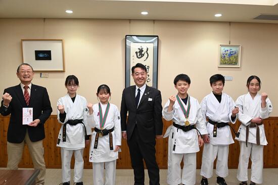2月10日(火曜):第5回全日本少年少女空手道選抜大会(全少選抜)及びJOC第20回全国中学生空手道選抜大会(全中選抜) 出場報告 市長表敬訪問