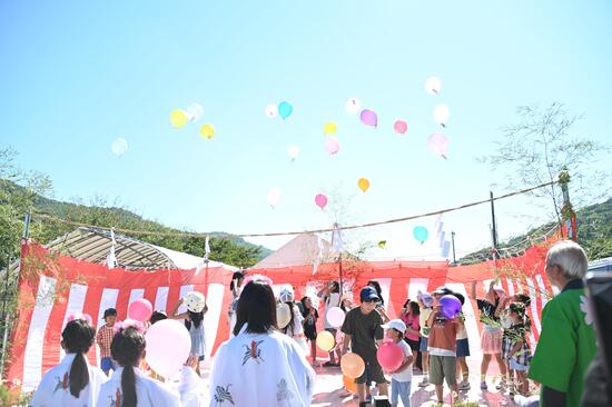 開会式では、荒船山神社舞姫による「豊栄の舞」や内山地区の園児・児童による風船飛ばしも行われ、盛大に盛り上げていただきました。