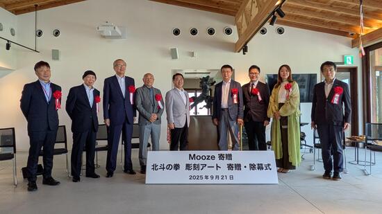 シンガポールに設立されたアートブランド「Mooze」より、北斗の拳原作者武論尊さんの出身地である佐久市へ彫刻アートを寄贈していただいたことを記念して、寄贈・除幕式を執り行いました。