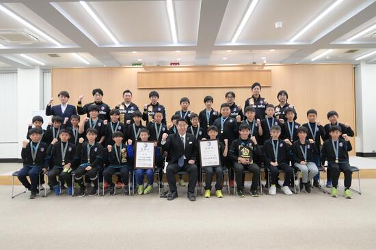 2025年度第11回U-11長野県少年サッカー選手権大会及びJFA U-12長野県サッカーリーグ2025で優勝した、佐久市サッカースポーツ少年団(佐久市SSS)の皆さんに表敬訪問にお越しいただきました。