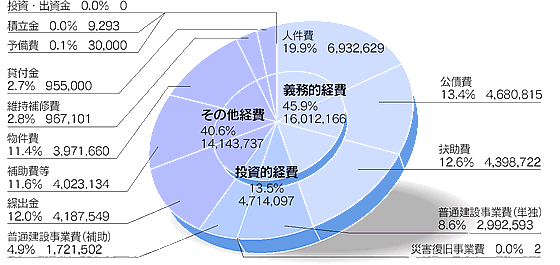 | 補助費等 | 外郭団体の運営費などに対する補助金や負担金など。 |